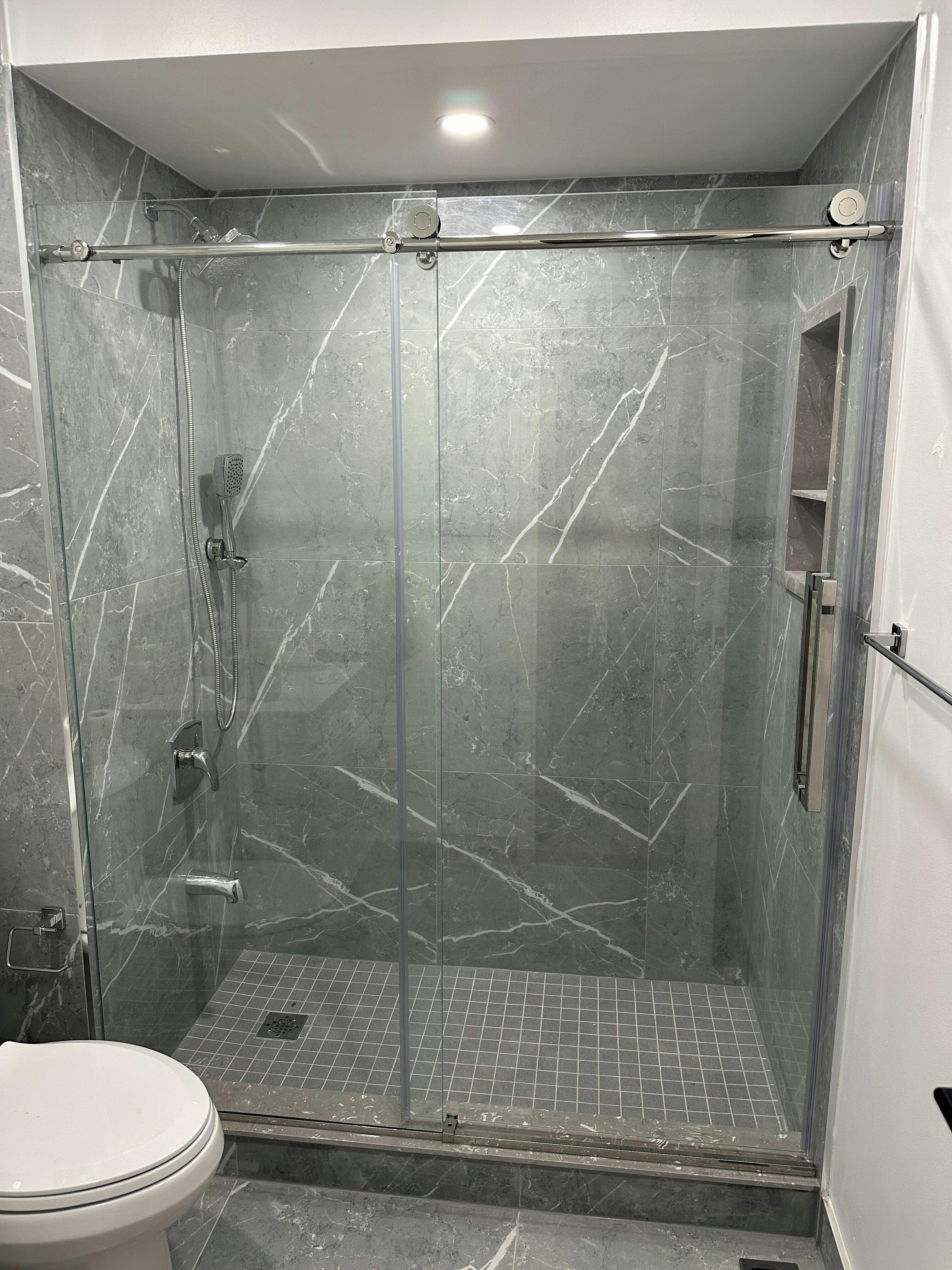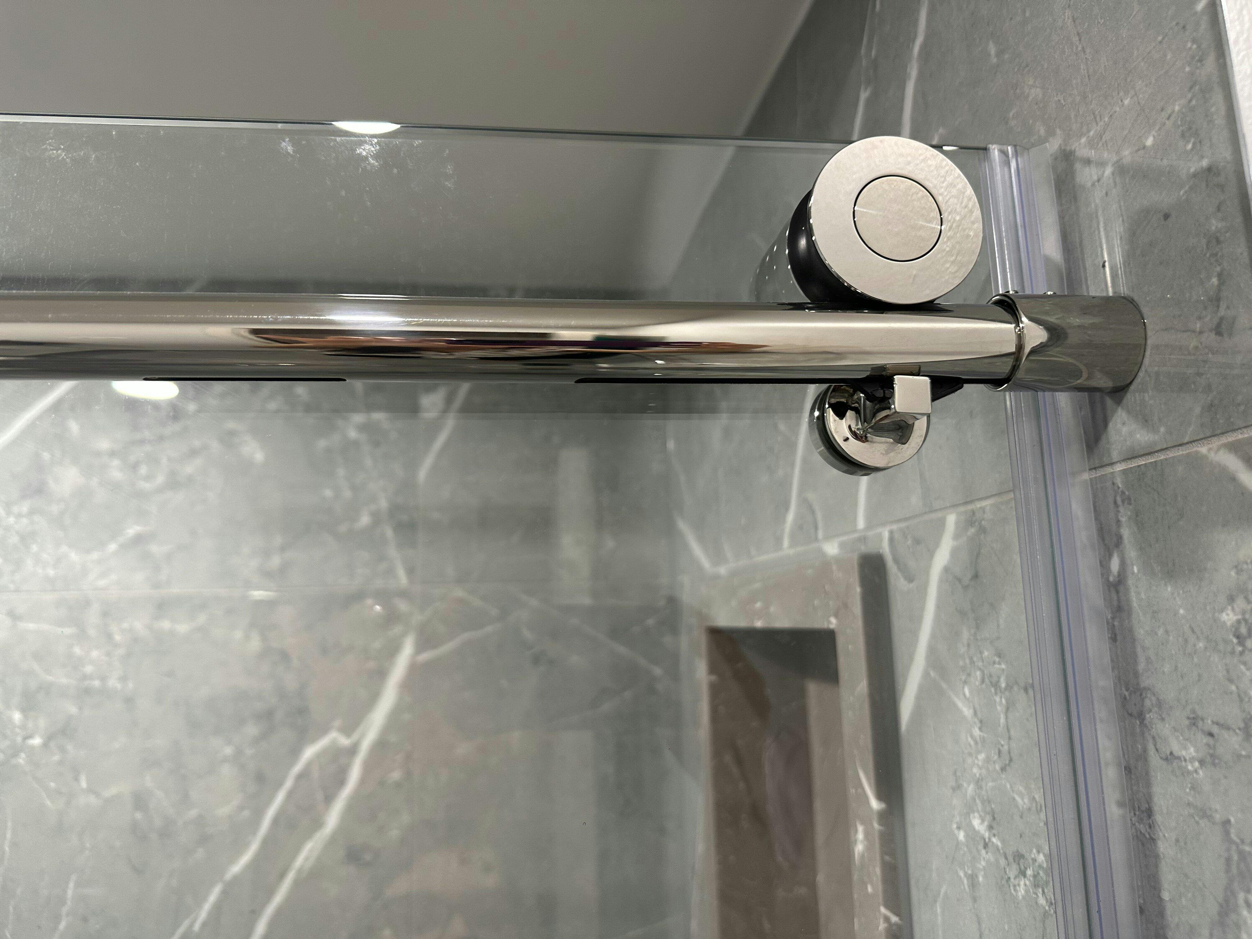 Upgrade your bathroom with this premium frameless sliding glass shower door featuring a soft-close mechanism for a smooth experience. Crafted with 8mm-thick tempered glass and a modern chrome finish, this door combines safety, durability, and luxury styling.